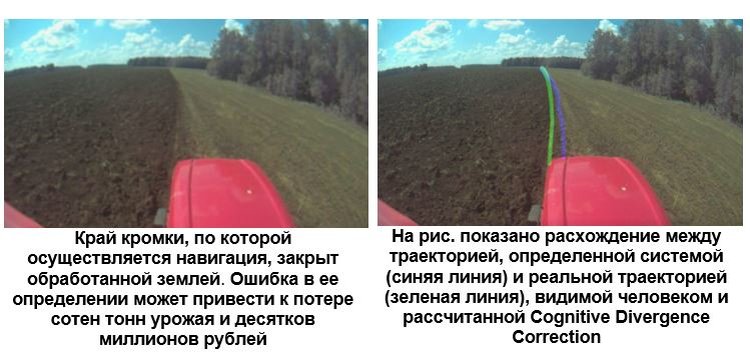 Разработчики «Когнитив Пилот» научились автоматически выявлять характерные признаки сцены, которые человек распознаёт на основе своей интуиции и набранного опыта, чтобы понять, как должна складываться траектория движения автомобиля. Для этого создан полноценный механизм — анализатор дивергенций, который осуществляет выделение таких признаков. В их числе, например, форма и размещение фрагментов почвы на поле, интенсивность и контраст границ, а также пространственная структура самой сцены.