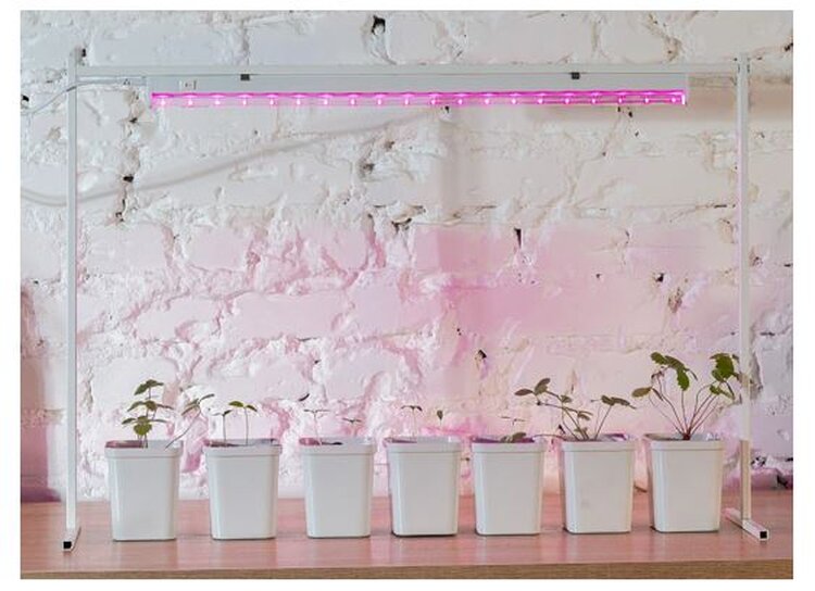 Для цветов подойдёт линейный светодиодный светильник красно‑синего спектра. Можно приобрести мультиспектральную лампу, излучающую синий, красный и белый свет. С таким устройством будет проще создать световые условия под требования рассады разных растений.