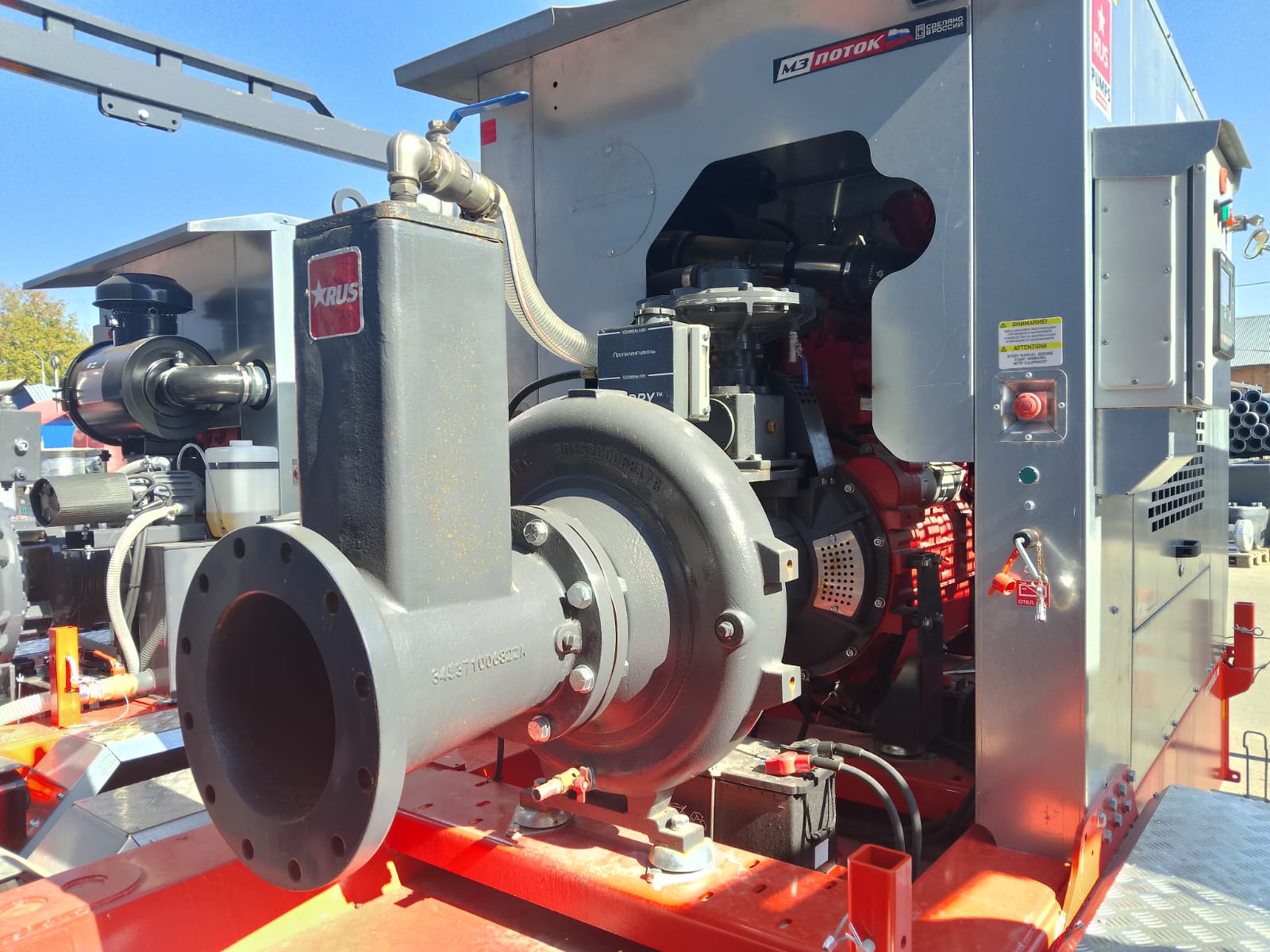 Дизельная насосная установка для пoлива и орoшения: на раме-баке с погодозащитным антивандальным капотом или козырьком на шасси с ходовыми огнями.