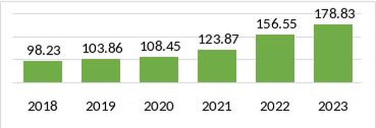 За последние 6 лет средняя стоимость свежих цветов на потребительском рынке выросла в 1,8 раза с 98,23 рубля за штуку в 2018 году до 178,83 рубля за штуку в 2023 году. В прошлом году цена на цветы для покупателей увеличилась на 14,2% по сравнению с предыдущим годом. Эксперты рынка отмечают, что это связано с ростом отпускных цен от производителей, увеличением стоимости логистики и услуг ЖКХ, а также с повышением заработных плат для сотрудников.