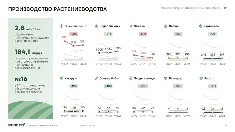 Самарская область занимает ключевую позицию в производстве растительного сырья и способствует обеспечению продовольственной безопасности страны в целом.