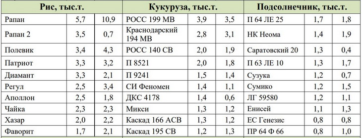 В свою очередь Россельхозцентр подготовил информацию по самым востребованным сортам (гибридам) за минувший сезон.