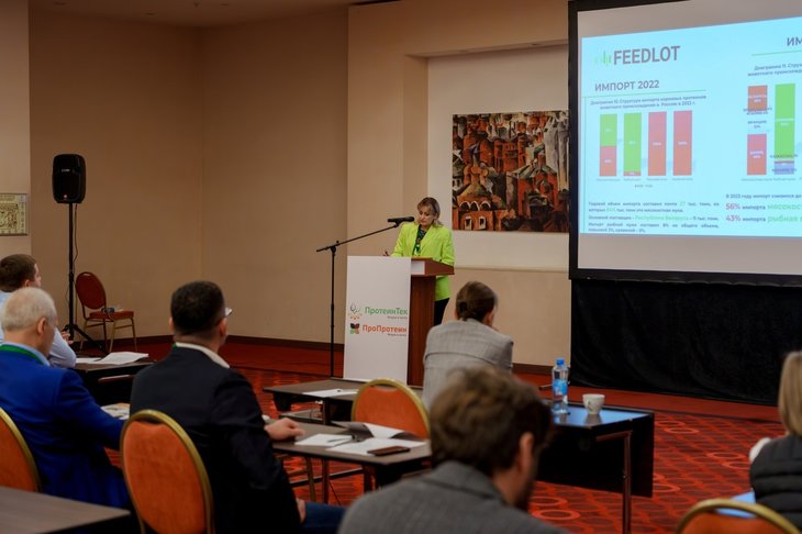 В течение двух дней специалисты отрасли обсудили широкий круг разнообразных вопросов. Так, Алексей Аблаев, ООО «Центр новых технологий», начал сессию с общего обзора новых технологий и оборудования для производства и переработки белка. Любовь Савкина, Аналитическая компания Feedlot.ru, привела данные о состоянии и развитии рынка кормовых протеинов в России. Наталья Чернышева, AgrotechHub Фонда «Сколково», сфокусировала внимание собравшихся на инновационных технологических разработках и перспективных решениях в производстве кормовых белков. Виктор Волик, ФГБУ ФНЦ «ВНИИ птицеводства», подчеркнул значение птицеводческой отрасли в пополнении резервов пищевого белка. Леонид Парфенов, ПК Интал, представил собравшимся новый белковый концентрат животного происхождения для кормления рыбы. Представители компаний-участниц из дальнего зарубежья также показали свою заинтересованность в потенциале российского рынка белка. Так, например, Эдвард Хэмрик, CelloFuel, представил новую технологию и подчеркнул высокую экономическую целесообразность производство протеина из метана в России, а именно при ферментации штаммов-продуцентов кормового белка на природном газе.