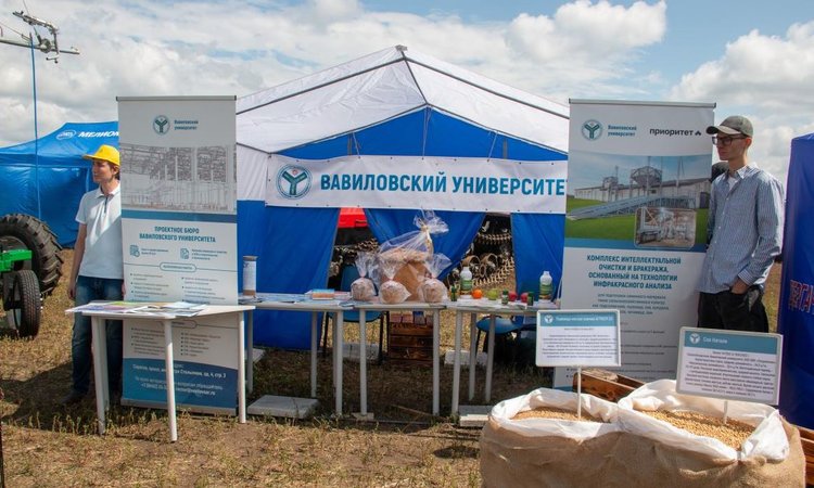 Ректор Дмитрий Соловьев представил стенд с разработками ученых Вавиловского университета на выставке.