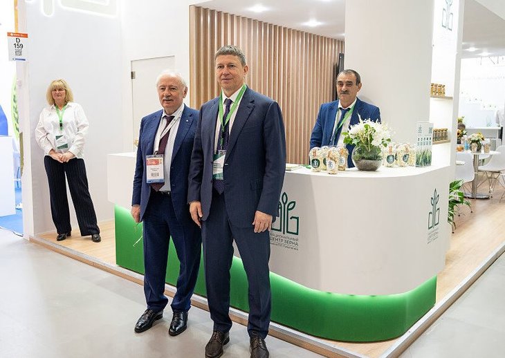 Экспозицию «НЦЗ им. П.П. Лукьяненко» оценили почетные гости: директор Департамента селекции и семеноводства МСХ РФ Иван Иванович Музалёв и генеральный директор АО «Щелково Агрохим» – партнер «НЦЗ им. П.П. Лукьяненко» – Салис Добаевич Каракотов.