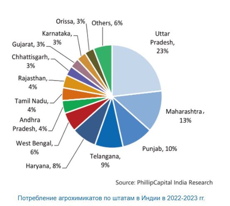 Несмотря на то, что Индия является ключевым игроком на мировом рынке агрохимикатов, внутреннее потребление пестицидов в Индии остается на удивление низким по сравнению с другими крупными сельскохозяйственными странами. Более того, одной из самых поразительных особенностей агрохимического ландшафта Индии является концентрация использования пестицидов всего в нескольких штатах. Согласно последним данным, на четыре из 28 штатов Индии приходится более 50% потребления агрохимикатов в стране. Такое неравномерное распределение представляет собой как проблему, так и возможность для роста отрасли.