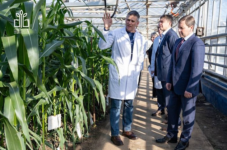 В ходе экскурсии почетный гость смог наглядно увидеть работу ФТК по ускоренной селекции пшеницы, тритикале, ячменя, овса, бобовых культур, гибридов кукурузы.