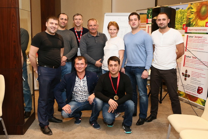 Тренинг по продуктам DuPont закончился тестированием команд на знание особенностей препаратов. По сумме баллов лидером первого дня стала команда Авант®, которая великолепно справилась с этим заданием. Кроме того, самый активный участник заседаний продуктовых клубов получил золотую медаль Лиги Чемпионов DuPont за личные достижения. Этой награды удостоился Александр Гончаров из ООО «Агротек» (Краснодар) за оригинальные вопросы экспертам и смелый опыт возделывания культур.