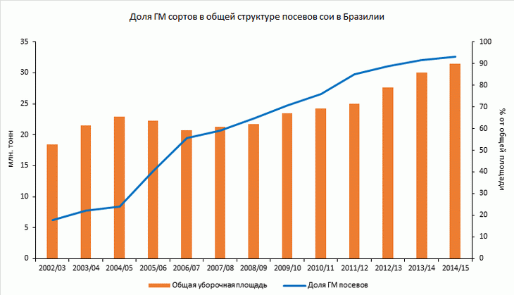 — Насколько динамично развивается производство ГМ-кукурузы и ГМ-сои в Бразилии?