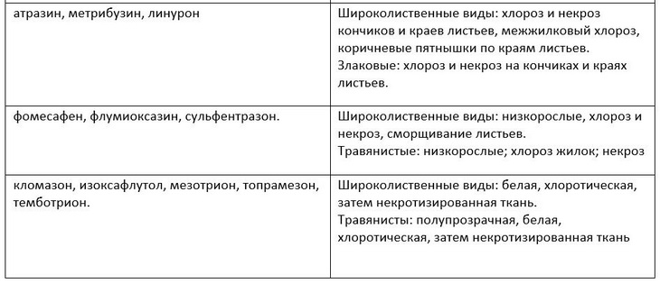 Симптомы угнетения остатками гербицидов