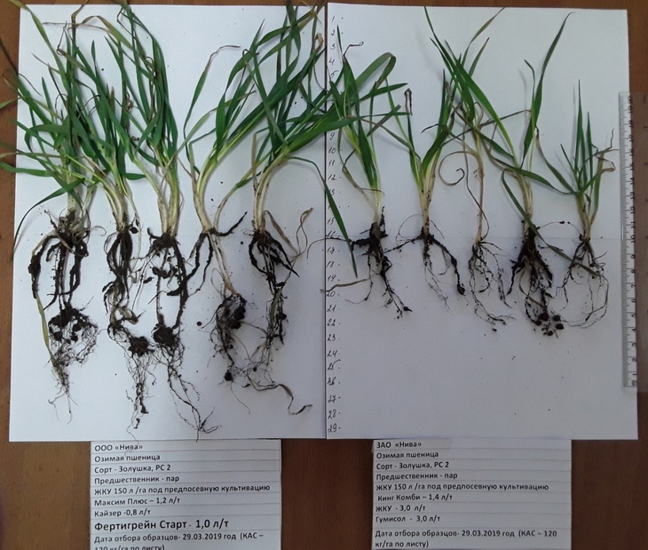 Интенсивнее формируется вторичная корневая система, значительно увеличивается ее активная зона и водопоглощающая способность. За счет развитой корневой системы (особенно вторичной) растение получает больше влаги и питательных веществ, значительно увеличивается коэффициент использования основных минеральных удобрений. Яровые получают гораздо больше шансов использовать дефицитную весеннюю влагу, а озимые – возможность лучшей перезимовки. Существенно повышается коэффициент кущения и количество продуктивных стеблей, а также возрастают число зерен в колосе и средняя масса зерна.