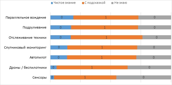 Стремительное развитие информационных и спутниковых технологий привело к появлению огромного количества различных современных решений для сельского хозяйства: БПЛА, карты-задания на основе индекса NDVI, спутниковые системы для контроля состояния культур на полях и многое, многое другое. На диаграмме (см. Диаграмма 1) отображены результаты опроса 1 783 российских фермеров, который провела компания Kleffmann Group в 2019 году.
