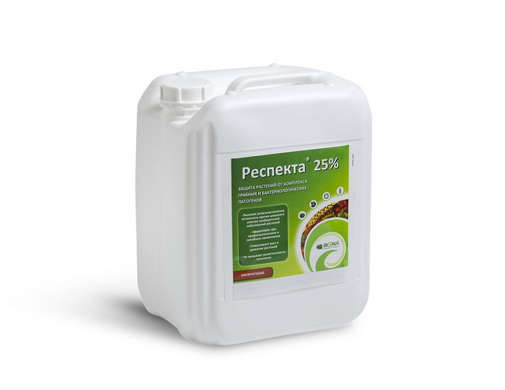 «Респекта 25» - Предназначен для контроля грибной и бактериальной инфекции период вегетации, а также для снятия стресса, вызванного применением пестицидов или неблагоприятными условиями окружающей среды.