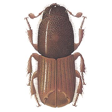 Вершинный короед – вредит различным хвойным деревьям, предпочитает сосны. Вредят имаго и личинки, протачивая ходы в коре и лубе живых деревьев, часто ослабленных в вершинной части.