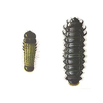 Личинка мокрицеобразная, с грудными ногами. Тело продолговатое, немного расширенное спереди и суженное в задней части. Покровы тела в волосистых бородавках. Цвет желтый разной интенсивности.