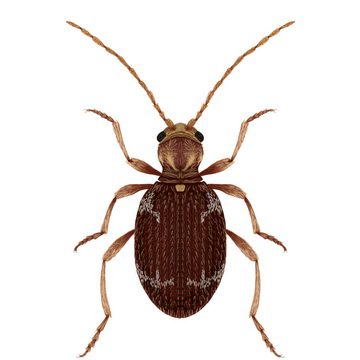 Известны случаи повреждения сушеного сырья и изделий из кож, мягкой мебели, книжных переплетов, шерстяных тканей, ковров, музейных ценностей и энтомологических коллекций. Особенно опасен для продуктов, хранящихся больше года.