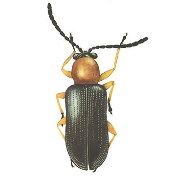 Переднеспинка сильно выпуклая, перед основанием с широкой, глубокой, тонкой и густо-пунктированной перетяжкой. Последняя на боках сглаживается и расширяется. Надкрылья покрыты резкими точечными рядами.