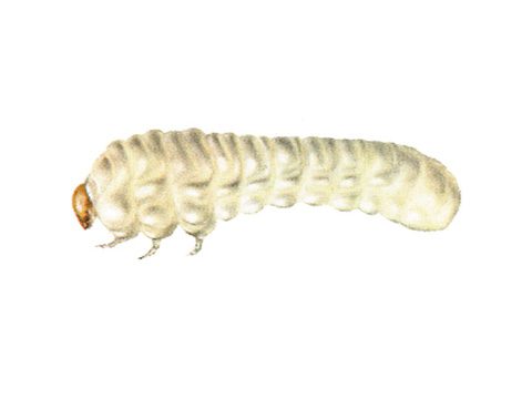 Личинка белая, червеобразная, с маленькой головой, передние сегменты тела значительно шире остальных, а задние сегменты крючкообразно загнутые. Имеет три пары ног и может свободно передвигаться.