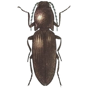 Личинка. Тело по форме уплощенно-цилиндрическое. Покровы красновато-коричневого цвета. Последний сегмент раздвоен.