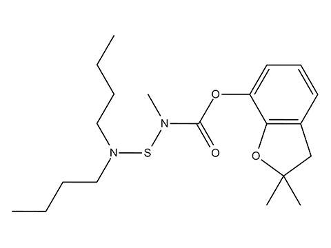 Получают взаимодействием N,N-дибутиламиносульфенилхлорида с О-(2,3-дигидро-2,2-диметилбензофуранил-7)-N-метилкарбаматом[8].