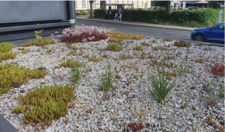 Исходя из ожидаемых условий окружающей среды (неглубокий слой почвы, сильное УФ-В-излучение, засуха) на крышах автобусных остановок, были отобраны виды, устойчивые к этим факторам.