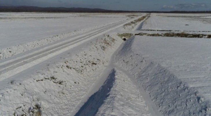 Мелиоративные работы в январе проводятся на участках «Мичуринская» совхоза «Южно-Сахалинский», «Новская» и «Русская деревня» в АО «Совхоз Корсаковский». В зимний период мороз не является преградой, а даже помогает, так как техника может проходить там, где летом было болото.