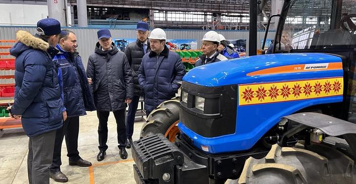В ходе осмотра статичной экспозиции Альберт Каримов отметил потенциал производства колесных тракторов и подчеркнул значимость для экономики региона производственных площадок «Тракторных заводов».
