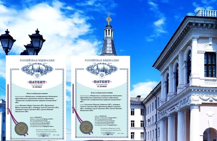Авторами патента № 2818841 "Капустоуборочная машина" являются: аспирант Вадим Никитин, доценты Алексей Алатырев и Ирина Кручинкина, профессор Сергей Алатырев и студент Никита Громов.