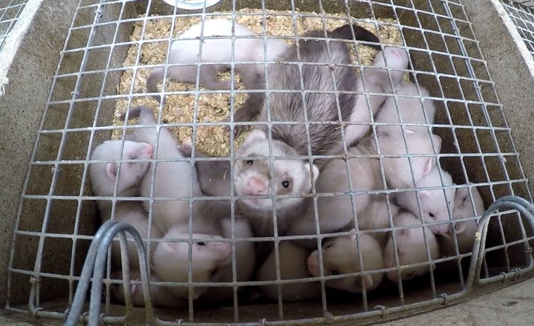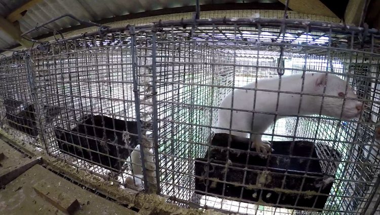 На кадрах – пушные звери — норки, лисицы, песцы, шиншиллы, соболи, которые содержатся в тесных клетках с проволочным полом. Испражнения скапливаются под клетками, создавая высокую концентрацию аммиака в воздухе – таким воздухом животные вынуждены дышать постоянно. Доступ к чистой воде и корму, судя по видео, нерегулярен.