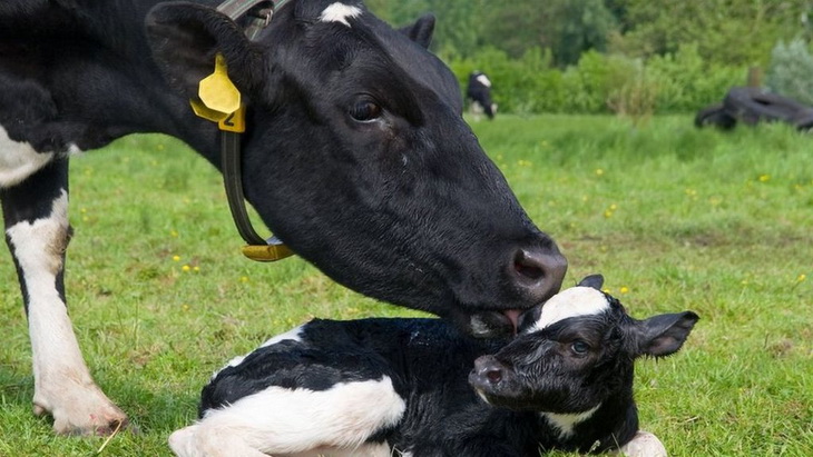 После отела корове предоставляют возможность облизать теленка. С одной стороны, это обеспечивает массаж его кожи и стимуляцию кровообращения, что очень важно в первые минуты жизни. С другой – облегчается отделение последа коровы, подлежащего обязательной утилизации. При облизывании коровой облегчается процесс дыхания теленка. Важно также, что корова заглатывает половые гормоны в слизи и околоплодных водах, существенным образом стимулирует лактацию и ускорение процессов овуляции, а также активизирует обмен веществ в собственном организме. Чтобы облизывание коровой теленка было равномерным, необходимо вовремя его перевернуть.
