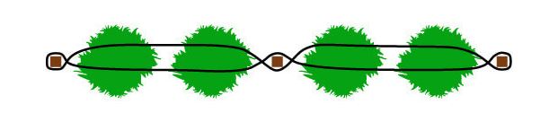 Используйте крепкий, устойчивый к погодным условиям шпагат, который не растягивается слишком сильно, например, синтетический шпагат пресс-подборщика. В крайнем случае, вы можете взять обычную веревку, но тогда, возможно, придется подтягивать «струны» в течение всего сезона, если они начнут провисать.