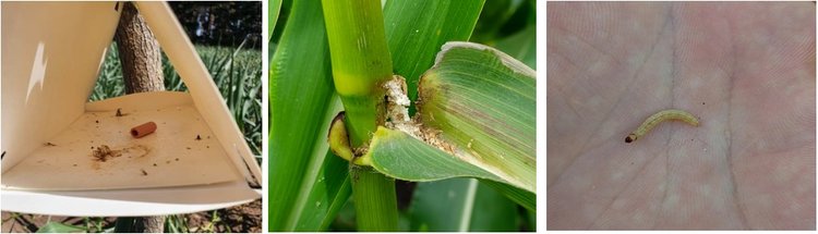 Определить, что кукурузное поле поражено стеблевым мотыльком, можно визуально и с помощью феромонных ловушек. Их используют для раннего контроля численности бабочек. Видимые признаки присутствия вредителя — засохшие и опавшие метелки, проколы на стеблях, листьях и початках, а также продукты жизнедеятельности мотыльков, напоминающие опилки.