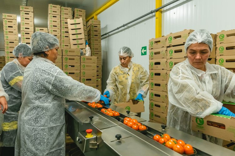 Сбор урожая осуществляется вручную с сортировкой плодов прямо в теплице по четырем категориям качества и степени зрелости. Продукция проходит контроль на каждом этапе: при сборе, на складе, при фасовке и перед отгрузкой. Соблюдение температурного режима – важная часть контроля качества. Продукция охлаждается поэтапно: сначала в камерах при 16-17 °C, затем в холодильных камерах до 10-12 °C. Это позволяет сохранять свежесть, вкус и полезные свойства томатов от теплицы до полки магазина.