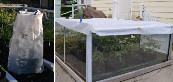 Можно накрыть спандбобом или марлей, сложенной в несколько слоев. Наконец, бутылки с водой, размещенные в междурядьях, позволят накапливать дневное тепло и отдавать его ночью растениям.
