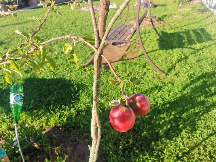 - Те же, что и взрослые яблони. При покупке посадочного материала обращайте внимание на состояние корневой системы и ствол.