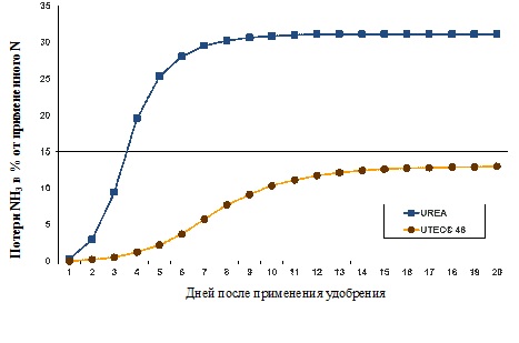Потери аммиака из обычного карбамида и с добавлением UTEC®