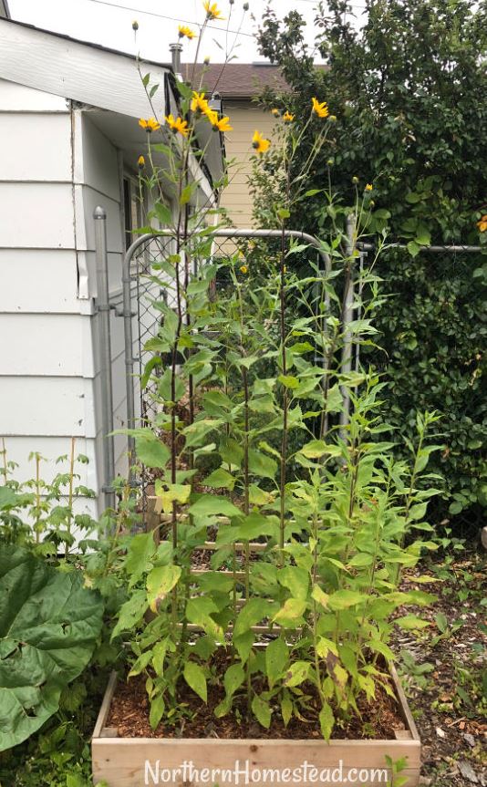 При том, что топинамбуру потребуется поддержка, хорошим решением будет организовать такую усиленную грядку рядом с забором. Таким образом, вы получите еще и защиту от любопытных взглядом плюс красивый ландшафтный дизайн.