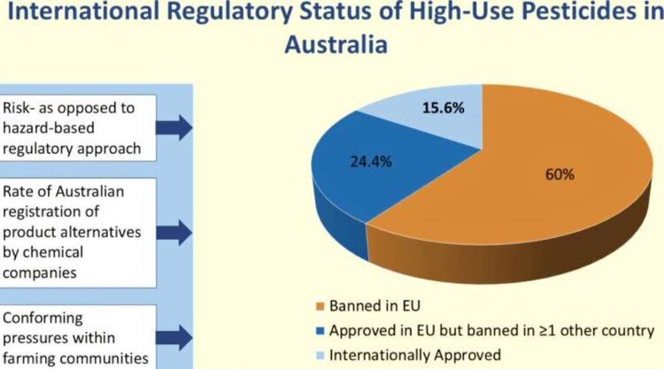 С одной стороны, Австралийское управление по пестицидам и ветеринарным препаратам (APVMA), ответственное за утверждение и регистрацию пестицидов в Австралии, использует подход оценки риска, при котором ранжирование риска может зависеть, например, от протоколов применения.
