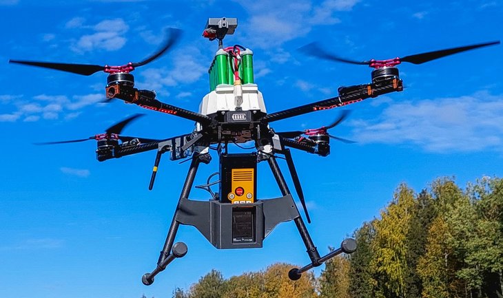 На заглавном фото: Квадрокоптер X-FLY с детектором метана LMm. (c) ПНИПУ.