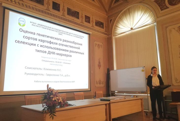 14 сентября состоялась защита диссертации Натальи Клименко, м.н.с. отдела биотехнологии ВИР им. Н.И. Вавилова, на соискание ученой степени кандидата биологических наук по специальности 03.02.07. – Генетика.