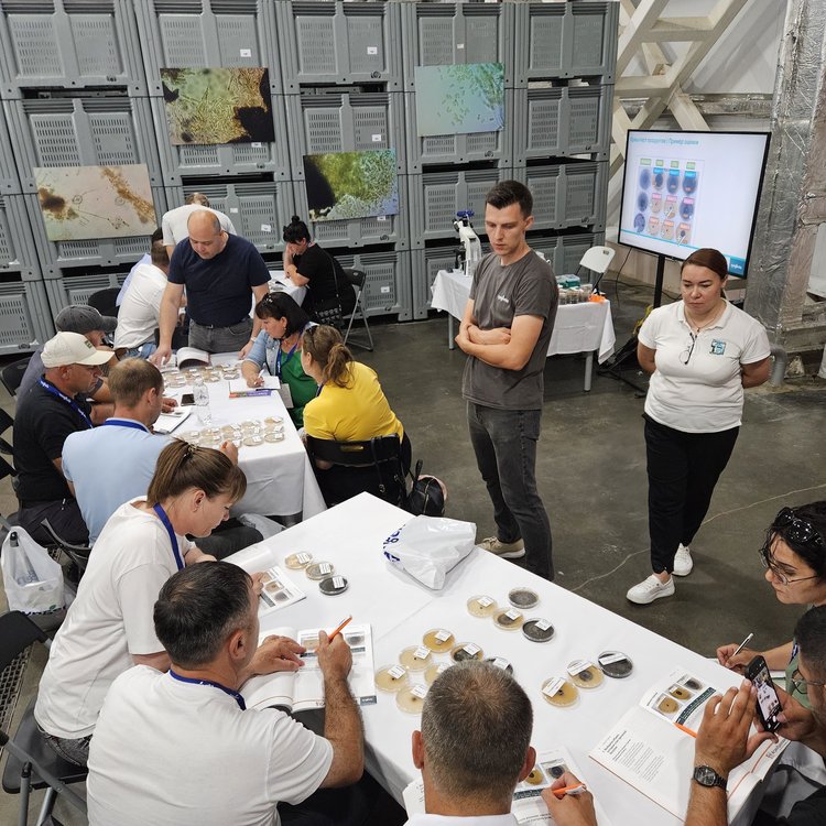 В отличие от обычных семинаров, здесь особенно большой уклон в практику. Любой агроном, даже начинающий, может поработать с микроскопом и увидеть, как проходит работа по выявлению вредителей, болезней. Это интересно и увлекательно.