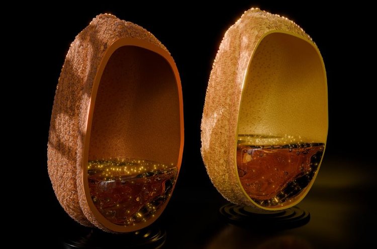 На фото - художественное представление эффекта редактирования всех шести копий гена TT8 у Camelina sativa. Семена с инактивированными генами ТТ8 (справа) имеют желтую окраску, уменьшенную толщину семенной оболочки и накапливают почти на 22% больше масла, чем семена дикого типа (слева). Автор фото: Валери Ленц/Брукхейвенская национальная лаборатория.